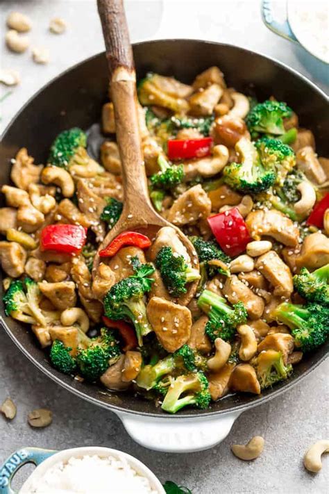 Once the oil is hot, add chicken, season with salt and pepper, and sauté until cooked through and browned. Cook the veggies until they are just tender before adding the cooked chicken, garlic and ginger to the pan. Pineapple chunks add extra sweetness, and cashews add the crunch. Cook until soft, 5 minutes. Last updated jun 22, 2021. Add chicken and cook until golden and cooked through, 8 minutes. In the same pan, heat 1 tablespoon of oil and add mushrooms. Savory fish sauce balanced with tangy lime juice and plenty of fresh basil. Stir fry sauce in a medium size bowl, whisk together corn starch and water. A protein and at least one vegetable—the formulaic requirements of every dinner, right? Remove chicken and keep warm. When the chicken is cooked through, add the vegetables back into the pan. Whisk together the ingredients for the sauce together in a bowl.